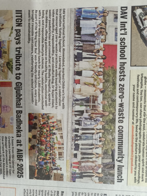 • DAV International School held an "Eating Together - Learning Together" initiative for Children's Day, promoting zero-waste practices and values. Nearly 2,800 students participated in a zero-waste community lunch, bringing their own reusable containers as